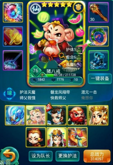装备选择应以防御和血量加成为主,例如浑天玄火盔或轩辕剑,这些装备能放大金角大王的元形百分比加成特性,进一步提升整体防御效能。法术搭配推荐群体治疗或增益类技能,如八九玄功或御风诀,这有助于弥补团队的短板,在PVP环境中还可加入解控类法术应对敌方控制技能。